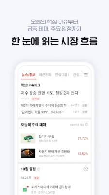 시장을 움직이는 주요 뉴스를 가장 빠르게 접하고, 급변하는 테마 속에서 새로운 투자 기회를 선점하세요. 증권플러스의 뉴스룸은 기업, 산업, 인물 등 광범위한 분야의 속보를 실시간으로 전달하며, 내 관심 종목과 관련된 심층적인 정보를 연결하여 주가에 미치는 영향을 효과적으로 분석하도록 돕습니다. 나아가 60가지 이상의 전문적인 차트 지표와 12가지 그리기 기능을 통해 복잡한 시장 데이터를 손안에서 직관적으로 해석하고, 경험 많은 '진짜 주주들'과의 커뮤니티에서 통찰을 나누며 함께 성장할 수 있습니다. 장전, 장중, 장마감 하루 세 번, 두나무에서 엄선한 핵심 이슈 알림으로 중요한 흐름을 놓치지 않도록 지원합니다.