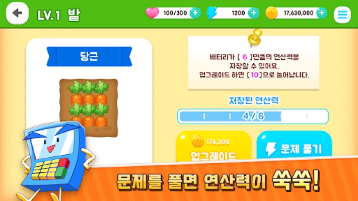 별똥별로 고장난 매쓰팜을 지니와 함께 구원하세요! 지니의 매쓰팜은 웅진씽크빅 AI 시스템으로 제공되는 수학 문제를 풀고 연산력 에너지를 얻어 농작물을 키우며 나만의 농장을 가꾸는 교육적 농장 시뮬레이션 게임입니다.