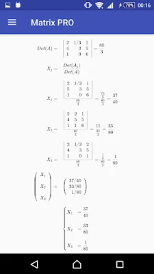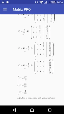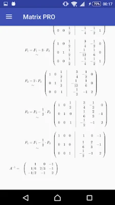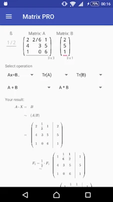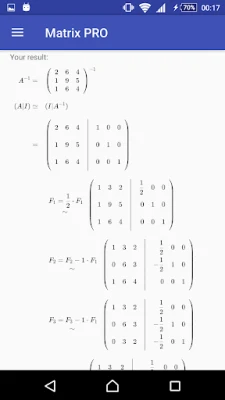 Matrices PRO는 행렬 연산 및 선형 대수 계산을 위한 강력한 도구입니다. 행렬식, 역행렬, 랭크, LU 분해, 연립방정식 풀이 등 다양한 고급 작업을 지원합니다. 모든 연산 단계가 상세히 표시되며, 분수 자동 변환 기능으로 복잡한 계산도 쉽게 처리합니다. 선형 대수를 학습하거나 문제를 해결하는 데 필수적인 앱입니다.
