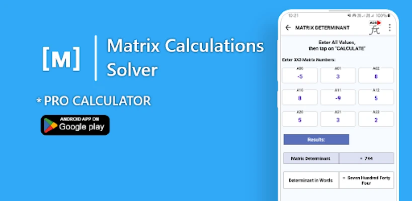 "Matrix Calculations Solver"는 복잡한 행렬 계산을 위한 최고의 도구입니다. 행렬식, 역행렬, 곱셈, 덧셈 등 모든 행렬 연산을 빠르고 정확하게 해결해줍니다. 학생, 엔지니어, 수학 애호가 모두에게 필수적인 앱으로, 직관적인 인터페이스와 상세한 풀이 과정을 제공하여 행렬 연산을 이전보다 쉽게 만들어줍니다.