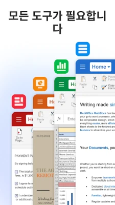 MobiOffice는 단순한 오피스 스위트 그 이상입니다. 문서 작성, 스프레드시트 관리, 프레젠테이션 준비 등 어떤 작업이든 전문가 수준으로 완수할 수 있도록 설계된 강력한 생산성 도구입니다. 익숙하면서도 혁신적인 인터페이스는 데스크톱 환경의 직관적인 사용감을 모바일 기기에서도 완벽하게 재현하며, 서식 복사, 변경 내용 추적, 조건부 서식, 복잡한 수식 처리, 그리고 몰입감 넘치는 프레젠테이션 모드에 이르기까지 모든 고급 기능을 손쉽게 활용할 수 있습니다. 완성된 작업물은 업계 표준 PDF 형식으로 손쉽게 변환하여 공유할 수 있습니다.