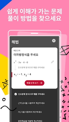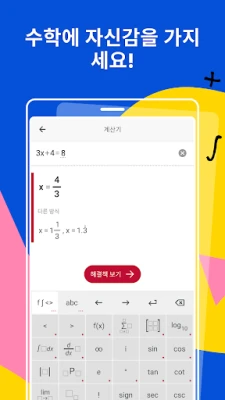 수학 문제 앞에서 막막함을 느낄 때, Photomath가 여러분의 든든한 학습 동반자가 되어드립니다. 복잡한 수식이 적힌 교과서든, 손으로 직접 쓴 노트 필기든, Photomath의 스마트한 카메라 스캔 기능으로 즉시 해답을 찾아보세요. 혹은 정교한 공학용 계산기를 활용하여 직접 방정식을 입력하고 편집하며 궁금증을 해결할 수 있습니다. Photomath는 단순한 정답을 넘어, 모든 수학적 난관을 명확하고 이해하기 쉬운 단계별 풀이로 안내하여 문제의 핵심 원리를 완벽하게 파악하도록 돕습니다.