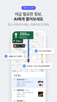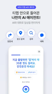 대한민국 대표 모빌리티 플랫폼 티맵은 단순한 길안내를 넘어, 사용자님의 모든 이동 경험을 혁신합니다. 인공지능 기반의 스마트한 기능들로 맛집 탐색부터 목적지까지의 경로 탐색, 일상생활 속 다양한 이동 수단 이용에 이르기까지 완벽한 솔루션을 제공합니다. 2천만 사용자들의 방대한 데이터를 기반으로 가장 빠르고 안전한 길을 안내하며, 언제 어디서든 티맵과 함께라면 한층 더 편리하고 효율적인 이동을 경험하실 수 있습니다.